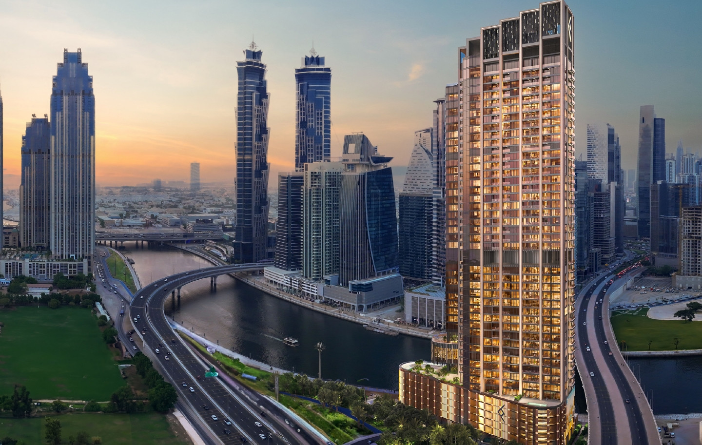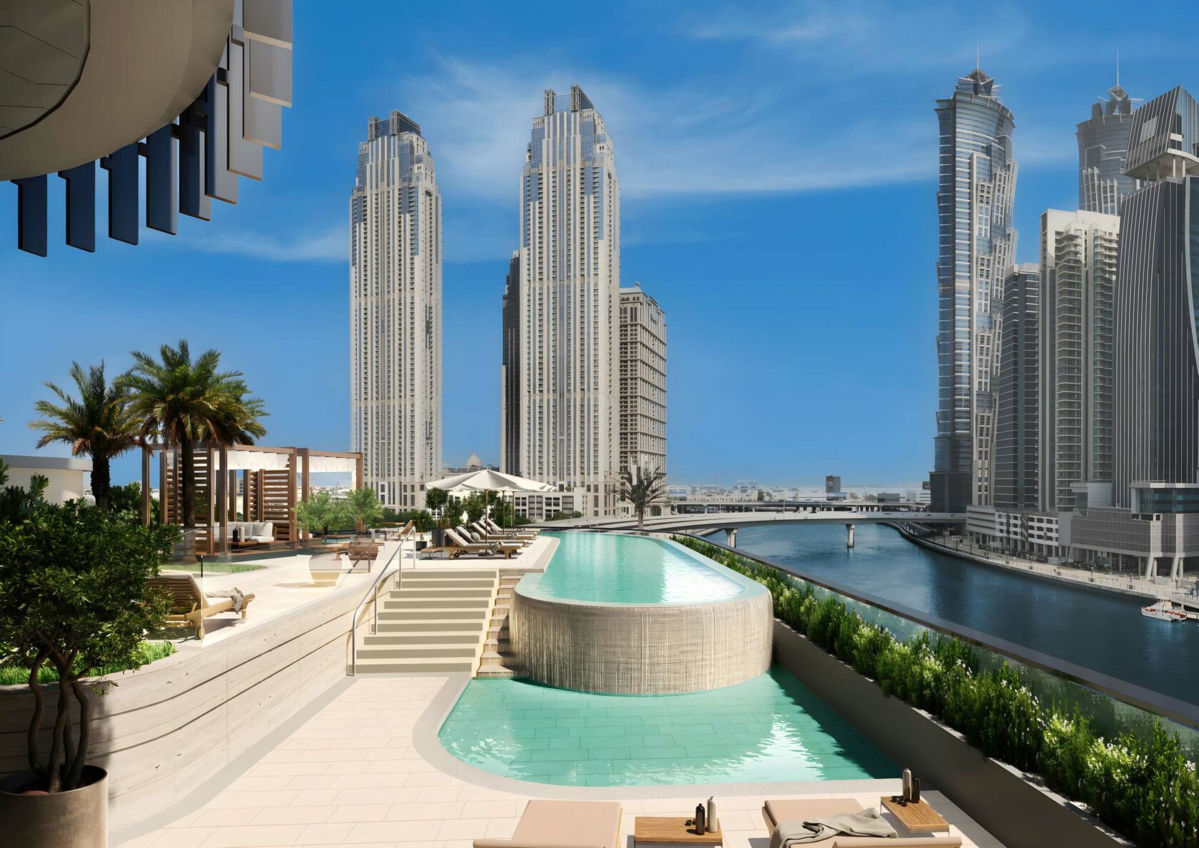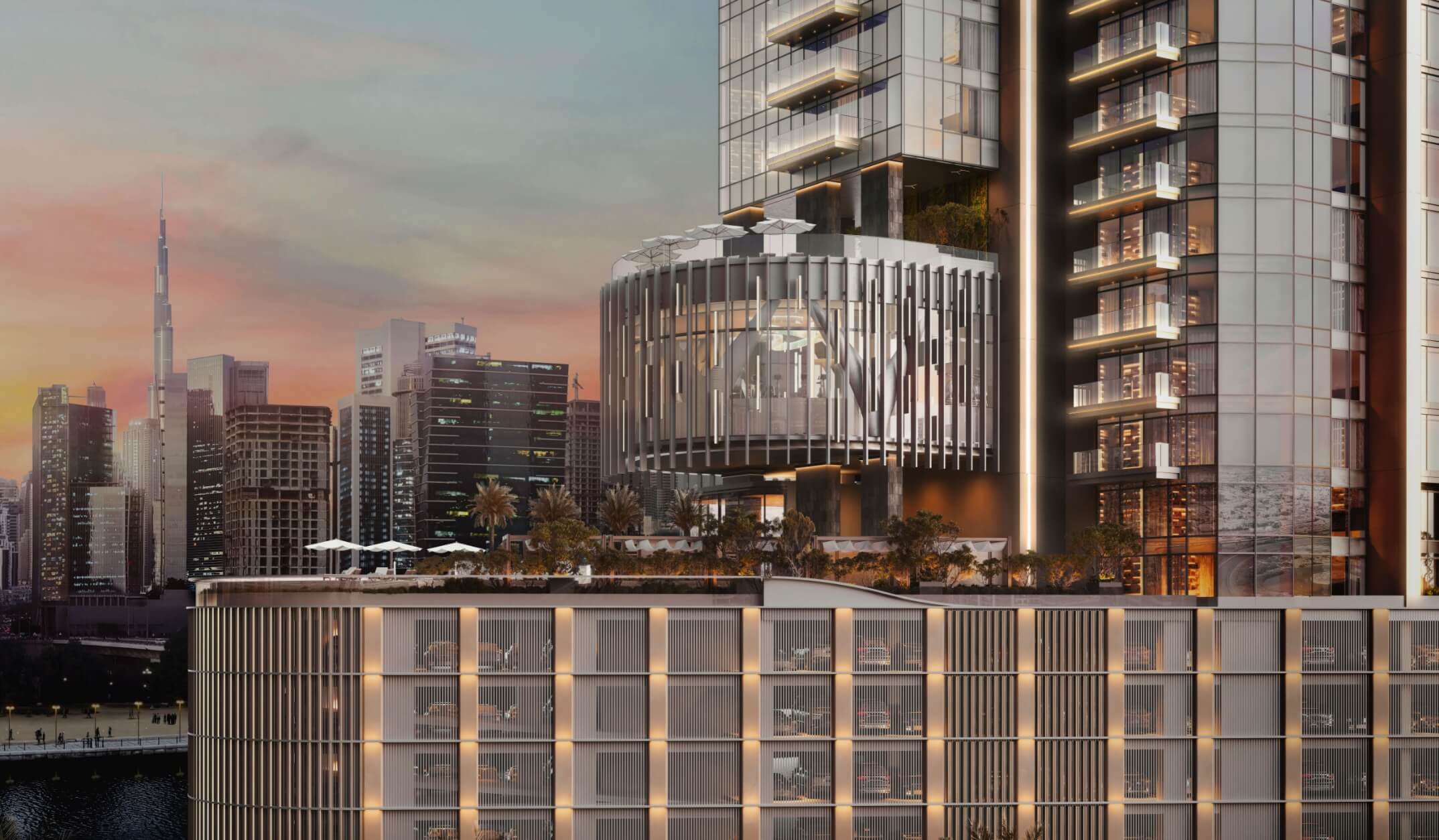 One River Point is an architectural masterpiece that boasts views of the mesmerizing Dubai Canal and the iconic Burj Khalifa. Its design seamlessly combines elegance, innovation and connection with the urban environment. One River Point features an array of world-class facilities that cater to the wellness and sophisticated lifestyle of its residents. The civic amenity is celebrated as an exclusive zone combining different spaces through a striking formal expression that gives it a touch of architectural distinction and visual appeal.